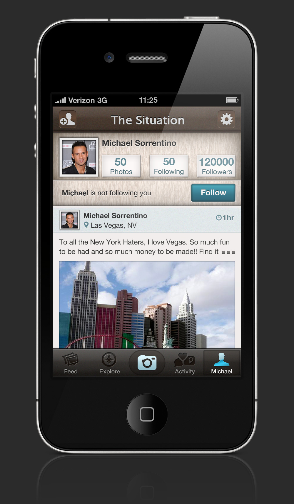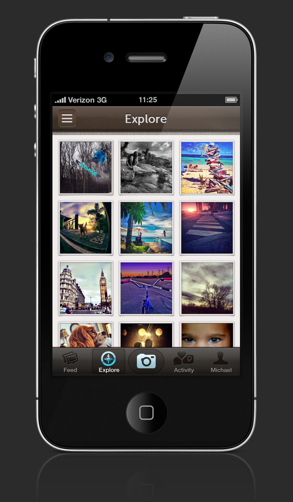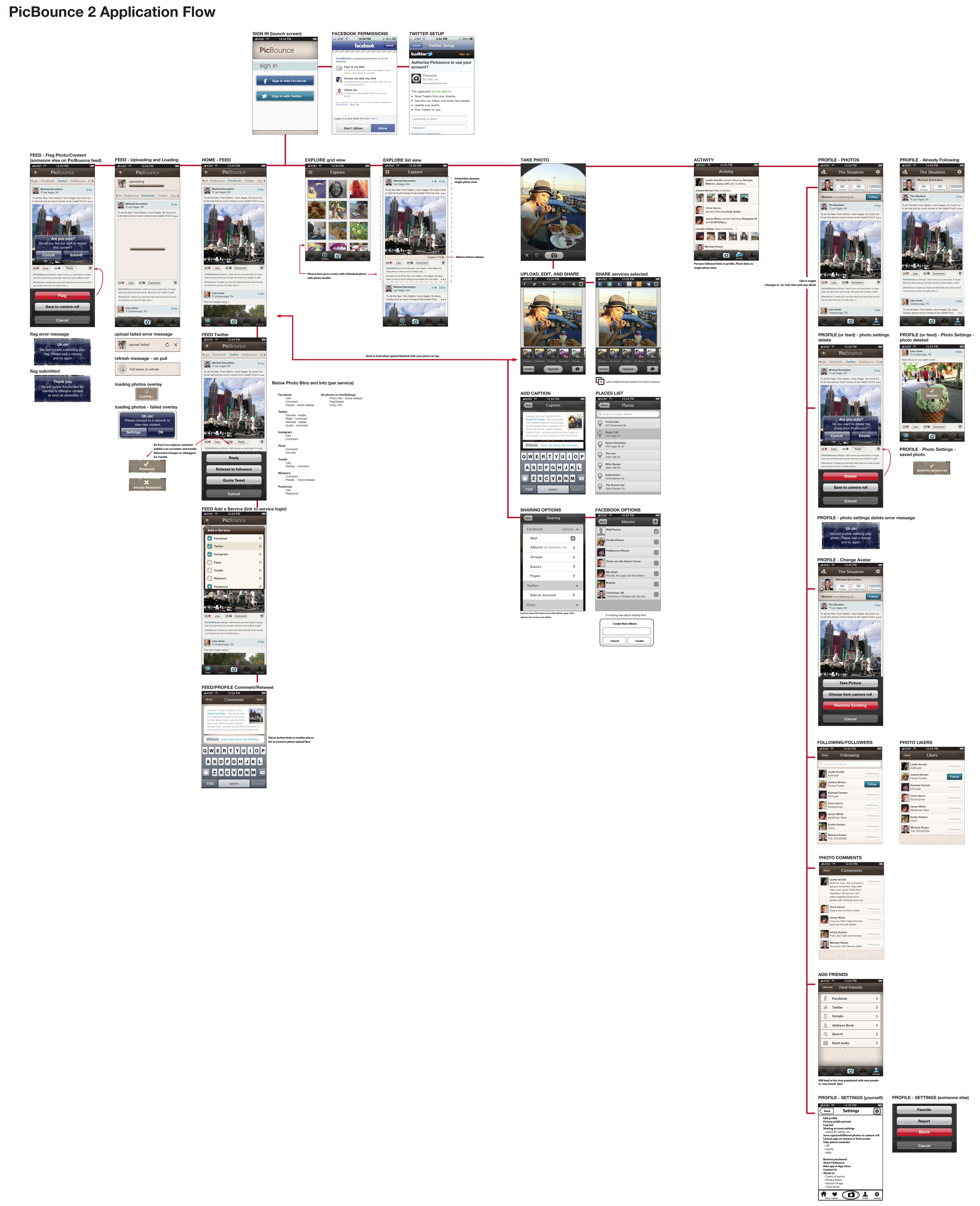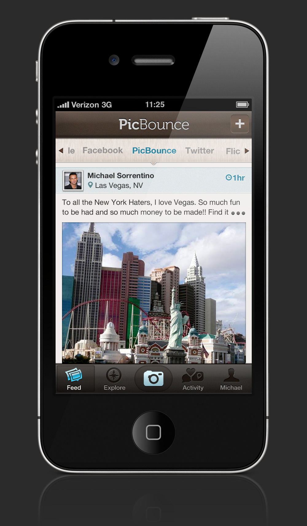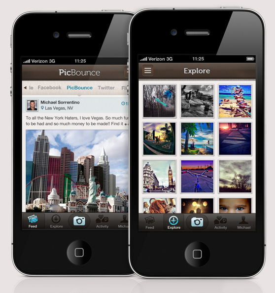 PicBounce 1.0 was the simplest and fastest way to upload and add filters to photos from your iPhone to Facebook or Twitter. We took the opprotunity with PicBounce 2.0 to create a full social experience for our users. The photo editing and upload experience was expanded on PicBounce 2.0 to include photo feed aggregation from users' favorite services, a gallery of the most popular PicBounce photos, and an editable profile section.